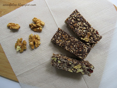 Egyik hétvégén granolát készítettünk, és ha már benne voltunk a munkában, gondoltam müzliszeletet is csinálhatnánk. Így készültek ezek a kakaós müzliszeletek aszalt cseresznyével és mogyoróvajjal felturbózva. Nagyon finomak lettek.